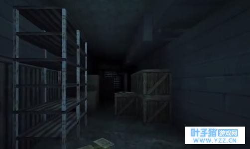走道上放着几个箱子,还一个架子,有点像生化危机。 恩,还好还好,并没有多恐怖嘛。
