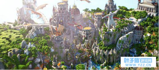 在这个世界中,飞龙翱翔于屋宇之间,与人类文明融为一体。点缀的绿色植物给这个仙境增加了许多生机。