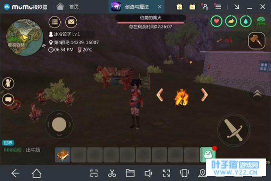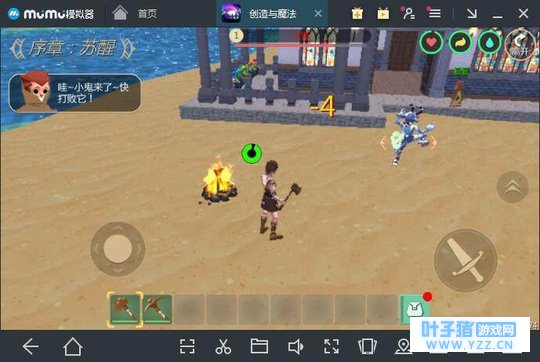 之后,玩家跟着npc到了房子附近,用收集的材料制作出一个篝火,再攻击出现的小鬼,击败小鬼之后可以获得一些资源,比如木材和石头。在击败这个小鬼之后,序章就正式的结束了,然后我们就会出现在主界面。