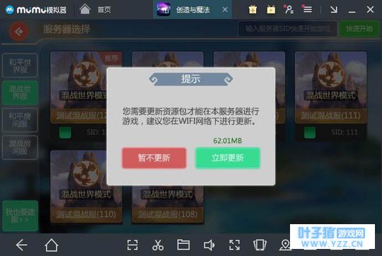 标准模式中有世界模式和房间模式,小编选择的是世界模式。进入之后是如下图这样的界面,但是进入这些房间,还需要玩家进行62m的更新才行。这个包也不算大,所以小编还是默默的更新了一波。