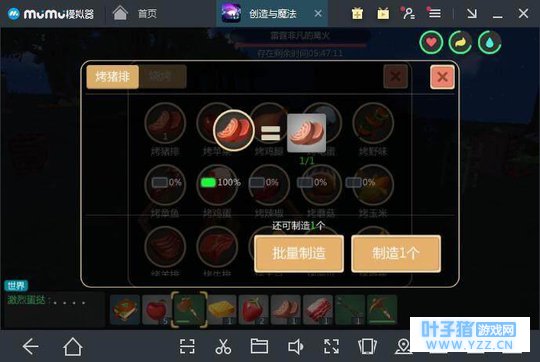 在这个模式中,玩家可以随意的砍树,击杀小怪收集资源,也能利用篝火烤肉烤水果什么的。反正能做的操作还是很多的,只是整个地图色彩比较暗淡,而且画面的质量只能说一般甚至有点差。面对这样的地图,小编也是比较难忍受的,所以在溜达了几分钟之后,还是默默的退出了游戏。
