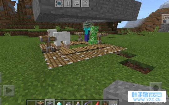 再然后,在活塞上面放上方块,二者之间的间隙留两格,记住,一定要是两个,不能多不能少。这就是建成之后的样子,这样,抓僵尸神器就完成了!