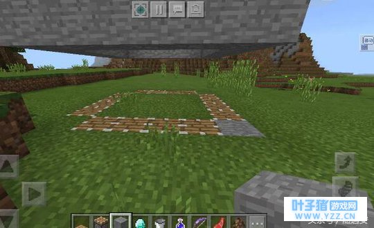 然后在你挖好的坑中,填入活塞,活塞全部要朝上放置,然后在活塞的内测放入压力板,放一排即可,不用太多!
