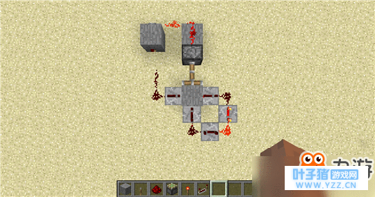 信号减半器,可以把两次信号变成一次。 中间那两个方块都是投掷器,上面的向右,下面的向上;漏斗朝向下面的投掷器。 所以最终完成的样子可以是这样: