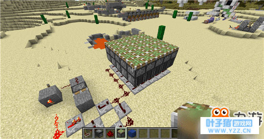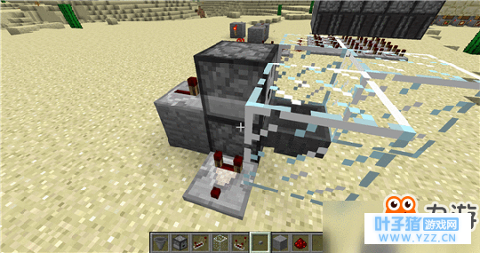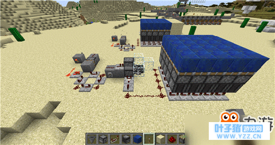 完成! 这台造浪机有很多可以改动的地方: 中继器循环和中继器阵可以扩大或调节延时来调整波浪频率 想要把波浪减少一半可以在两部分之间增加这个东西
