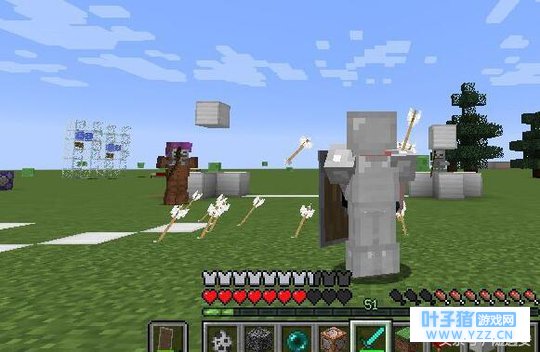 盾牌简直就是防御神器,180点的耐久度也是很强的,盾牌还可以防御爆炸伤害,各位开始的时候不是很怕苦力怕吗?有了盾牌,再也不怕了,还有那个放箭的骷髅小白,也不用怕他!