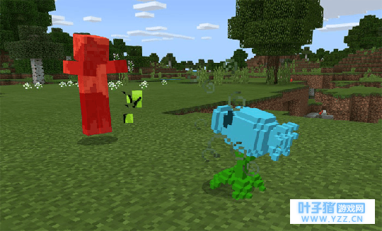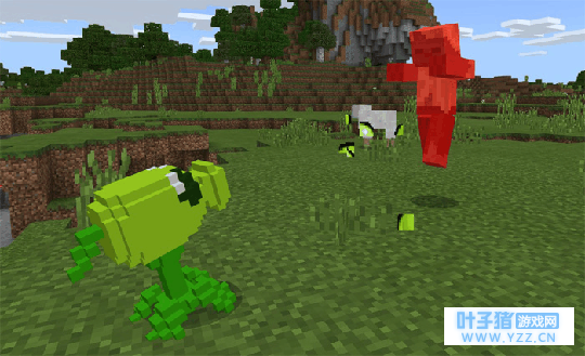 在这个游戏里最基础的射手自然是豌豆射手了,制作游戏模组的大神居然连它发射子弹砸方块僵尸后碎裂的效果都做的如此还原。
