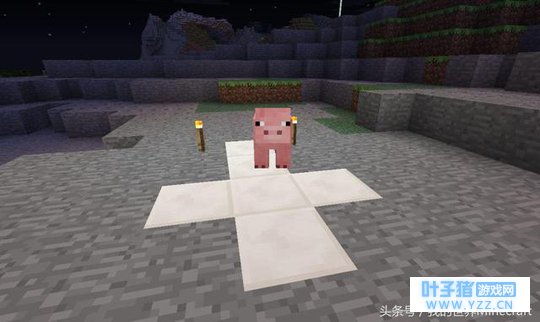 这个就更抽象一些了,在地上用石英块或者是白色羊毛铺成一个十字形(假装能包起来的样子),然后往中间尽情的扔饺子馅吧!