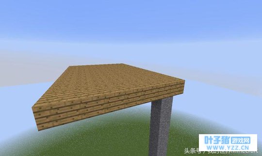 然后在柱子的顶端搭建一个平台,根据你想要盖多大的房子决定大小。
