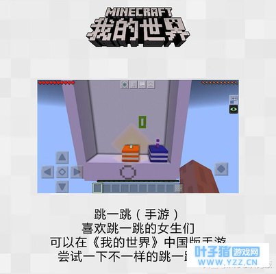 当然,并不是所有妹纸都喜欢粉红色的漂亮东西,比如有部分就喜欢吃。官方对此也是有考虑的,比如“食物工艺”组件,厨娘们还不快去大展身手?如果你喜欢玩,那么还可以在《我的世界》中尝试一下玩“跳一跳”的感觉,是不是很有趣?