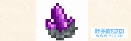 紫水晶矿石 紫水晶矿石在外观上闪着绿色的光芒,但极其稀有,在Mod下才能被挖掘出来。