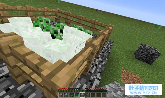 这次我们加固了围栏,苦力怕终于跳不出来了,于是我们尝试让苦力怕爆炸。