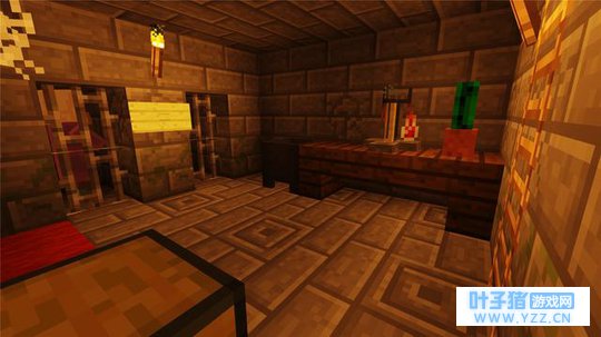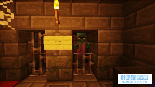 在这里我们可以看到两只村民。可以看到一个箱子里面肯定有金苹果也可以看到酿造台有虚弱药水,我们要让进化的僵尸村民退化成村民
