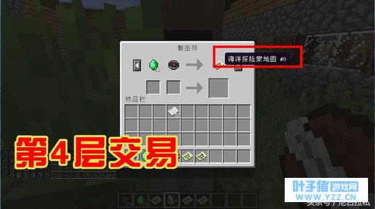 第四层交易的其中一个就是用16个绿宝石加一个指南针兑换一个海洋探险家地图,这就是标注海底遗迹的地图了。