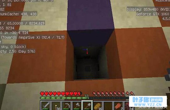 随便挖掘地毯范围内的一块方块,你会发现其实是有地洞存在的,这个时候,你就需要往下填方块,然后在挖掉方块,垂直下落!