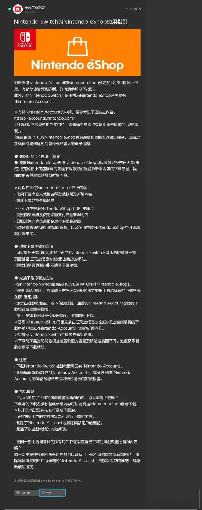 官推: 小伙伴们!终于,终于到发售的日子了~一起去冒险吧~ 【NS中文资讯终于来啦!】 机器上有登陆港服账号的玩家,现在任天堂正式开始推送中文资讯了!
