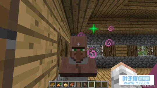 如果没有成功生下小村民的话,还有另一种增加概率的方法,和村民进行交易。当村民头顶出现绿色星星和粉色泡泡的时候,就说明