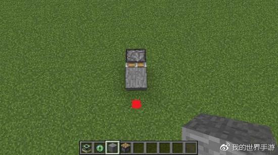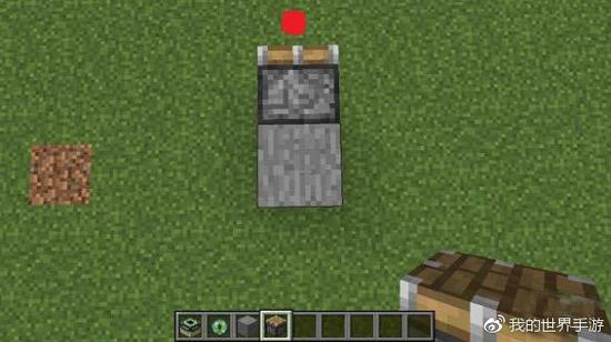 但是如果我用的是活塞呢?首先活塞可以活动的那一面是正面,为了保证活塞推向正确的方向,我就必须站在一个特定的方向才能让活塞面向正确的地方。 比如下面,如果用红点来表示我的位置,我要活塞能推动这个方块,我就必须站在红点的位置来放置活塞。