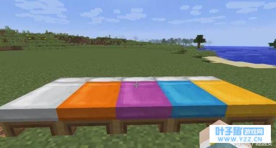 4、关于床 在1.12版本当中,当你从高空落下,床是能够减少你的掉落伤害的,掉在床上还能回弹一下,跟蹦蹦床一样!另外,除了保留了原本的红色的床,还加入了各种五颜六色的床,花哨了!