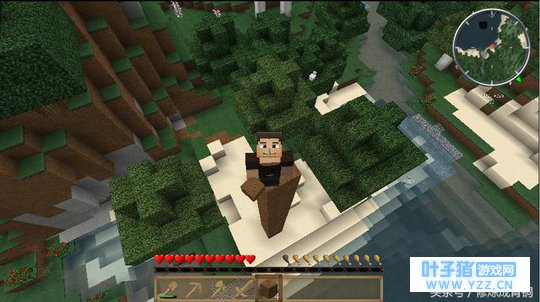 接着用铲子挖一点泥土,盖一个简单的房子(棺材房),最好别把泥土垒高,虽然看得远,僵尸也够不到你,但是跳下来摔死的滋味也不好受。