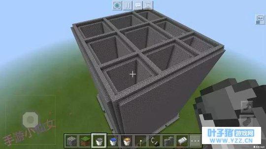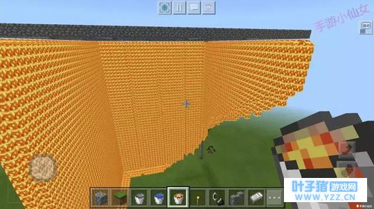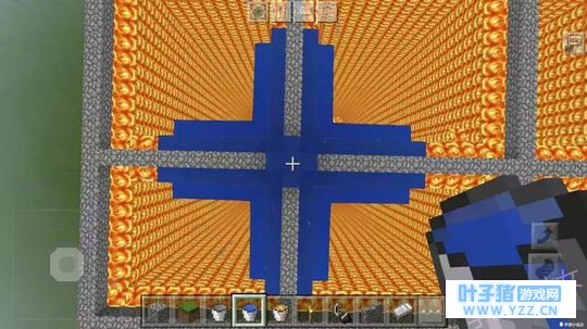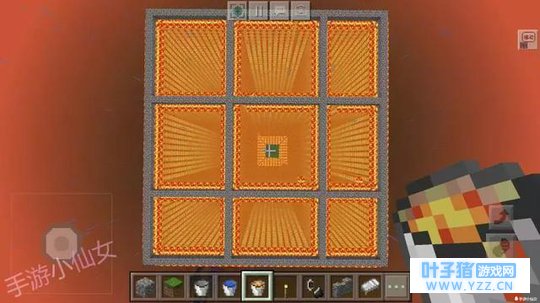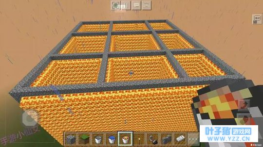 当做好这些步骤后,我们便可以往这些高空中的柱子下方放置岩浆,注意不要漏了放置。然后可以把所有网格都填满。
