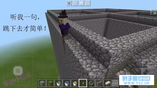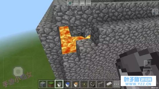 很快水就把岩浆墙变成了石墙,我们只要用空水桶把水取消掉就行了。