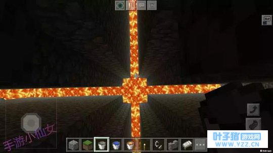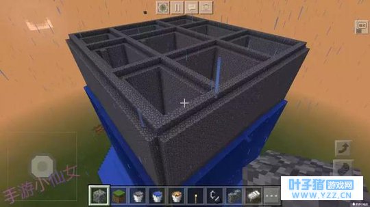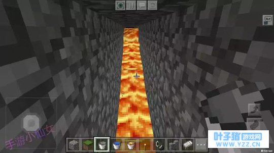 这时我们需要进入到墙体内部用空水桶取消掉岩浆的源头,虽然看似很麻烦,但墙的内部空出来的这部分便可以做迷宫城堡的暗道。当然,如果你想要单层,只要开始时调整一下岩浆和水的位置就可以了。