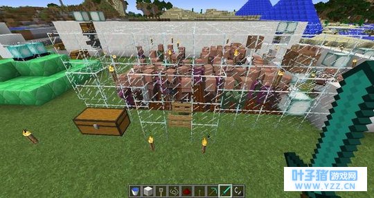 要说陷阱中,最不容易被发现的,就是拌线钩陷阱了。那细细的蛛丝,除非特意去寻找,否则蛛丝是没人会发现的。这里我没有接线,因为想法实在太多了。在门的上方放一个TNT,在门的正前方放一个发射器,在头顶放一个铁砧砸你的伙伴,等等。非常多的陷阱技巧,不过我这里还是不建议放太多TNT,比较把小伙伴的建筑都炸没的话,我估计脾气不好的,你们会打起来。从社会和谐的角度,恩,我们还是低调点,哈哈。 三、放走圈养的村民