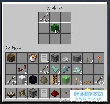 发射器内放入任意方块和部分箭,操作发射器的开关后会随机发射物品,当普通物品被发射出去不会打开门,如果箭被发射出去则有几率命中按钮打开门,到底能不能打开那就全靠缘分了。