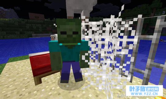 玩家从几十米的高空掉落到蜘蛛网上后并没有受到任何伤害,说明这一招的确有效。 防御僵尸入侵 基于蜘蛛网可以让生物的行走速度变得极其缓慢,我们又开发出了它的另一项功能,就是黏住僵尸。