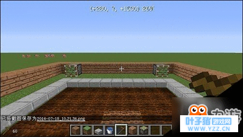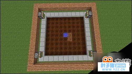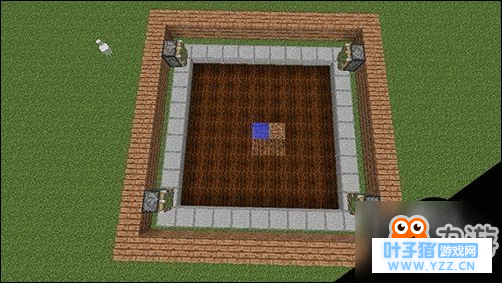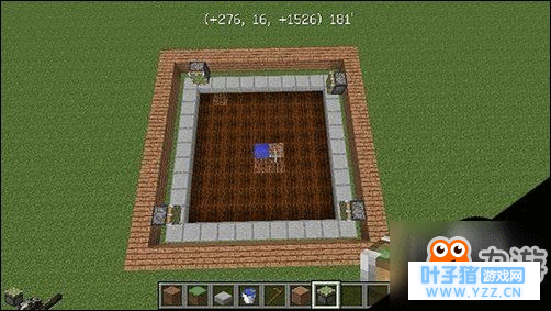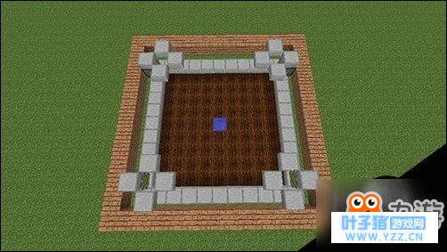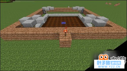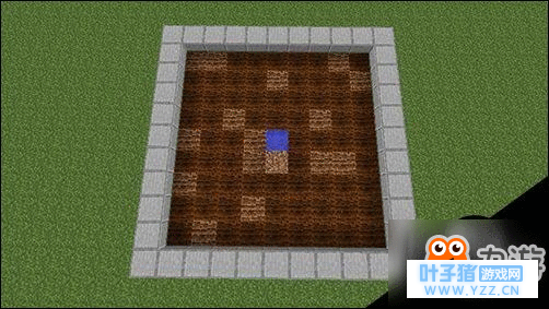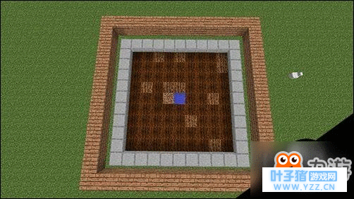 制作耕地只是为了确认外部规格的,反正制造的过程中肯定会发生踩踏事件,所以耕好之后就不需要在意会不会踩坏了,我们继续下一步。 2.在9x9耕地的外围围上一圈方块,这里我用的是半砖,因为如果是整砖的话每次进小麦田的时候会踩坏边上的小麦,实质上任何砖块都可以哦,推荐的话还是用半砖,省事省力。