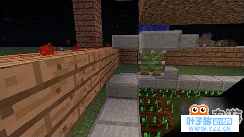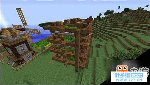 完整的二层可无限叠高小麦塔就这样完成了,你只需要种上作物,成熟之后一拉拉杆,所有的作物就都会被往下冲,然后落到最底层的洞里了。 附录:有的人说这样收割最后拿取作物有点麻烦,在这里加一个漏斗自动存放的装置,也是非常简单的。