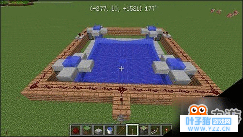 3.在半砖方块的上方再围一圈方块,这圈必须用整方块,因为要在上面放红石。