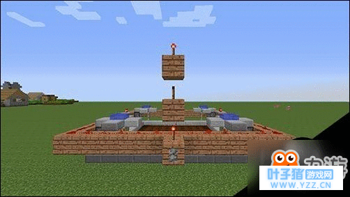 5.在活塞上方用任意实体方块摆放出一个十字形,中间打掉,得到如图所示的造型。