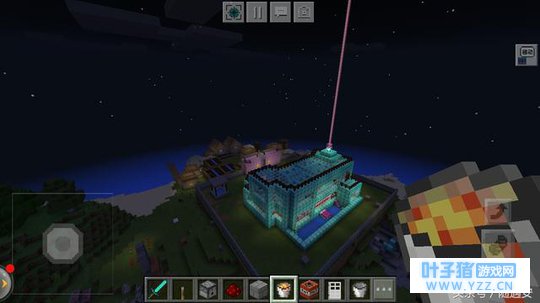 在夜空下,最好看的不是浩瀚苍穹,而是彩色的信标!小编这个还没有多做一点,所以一个粉色的信标看起来比较单一!许多小伙伴们问我为什么信标是彩色的,是不是又加入了什么合成物?其实很简单,在信标的上面,放置一个彩色玻璃方块就行了!没错,就这么简单!
