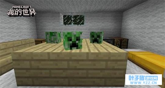 恶搞玩法:爬行者陷阱 在《我的世界》中,爬行者头颅常常会被用于建筑装饰。因此,这样日常可见的装饰物,就更能轻易地被伪装成陷阱,给小伙伴们带来血槽被清空的瞬间!在木板搭成的台子上,摆上一些爬行者头颅,在其中混杂着一只真正的爬行者,在视觉效果上,两者并无差别。等小伙伴进入房间,走入爬行者的爆炸范围内,迎接小伙伴的一定是惊喜一刻!