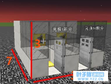 俯视图:箭头方向可以一直延伸,例如一个窗口是兑换1积分 第二个窗口10积分 第三个100积分 以此类推 每个窗口我留有两格 这是用来摆放命令方块用的 建筑就是这样 可以根据自己审美装饰 接下来先创建一个名为“积分”的积分板 /scoreboard objectives add Kill dummy 将它显示在界面右边或者按TAB键显示的列表 我弄在右边 /scoreboard objectives setdisplay sidebar 积分 接着设置为0 就会在界面上显示名为积分的积分板 当然在创建计分板的时候可以在dummy后面加你想要显示的计分板名称,例如积分排行榜 /scoreboard players set @a 积分 0 我给自己先加1000分 /scoreboard plqyers set @p 积分 1000 设置好后 现在弄命令方块 每个窗口两个