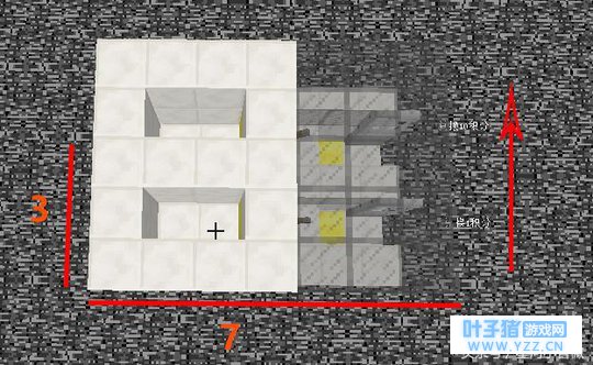 所需材料:玻璃 石英 踏板 金块 铁门 拉杆 命令方块 也可以换成自己喜欢的 同功能方块 例如:钻石块、木门 然后建成这个样子