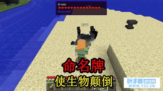 命名牌顾名思义就是用来给生物命名的,除了末影龙和玩家外所有生物都可以被重命名。但除了命名外它还有一个特殊效果,那就是当把生物命名为“Dinnerbone”或“Grumm”时能使生物颠倒过来!于是各种奇葩的情况纷纷出现,比如玩家就用它实现了倒着骑马,非常的有意思,哈哈~