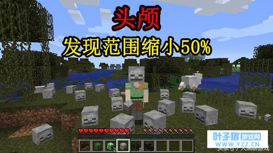 在单人生存模式中隐身药水的作用并不大,当怪物锁定你时,喝隐身药水是没有任何作用的,而且隐身药水的制作和持续时间也是个大问题。但头颅就不一样了,这种听来除了装饰不知有什么用处的物品,对怪物却有着堪比隐身的特殊效果!当玩家戴上怪物的头颅后,同类怪物发现你的范围将缩小50%!而这个效果有个很贴切的名字,叫做“伪装”!