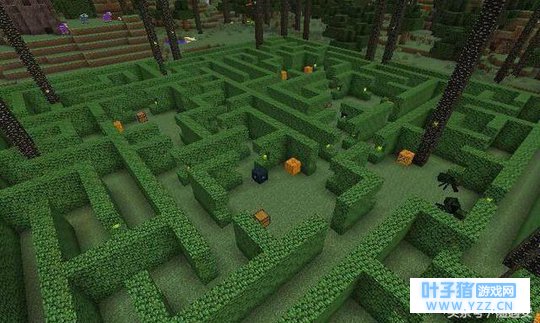 这个迷宫就很像现实中的迷宫了,不过构成迷宫的材料不同,这里的材料是树篱构成的。在这个迷宫中,可是有这许多的宝藏,同样存在着风险,这里有蜘蛛还有刷怪笼,但是整体上是一个比较简单的攻略地,有着一些初期的补给品! 四、空心矿山