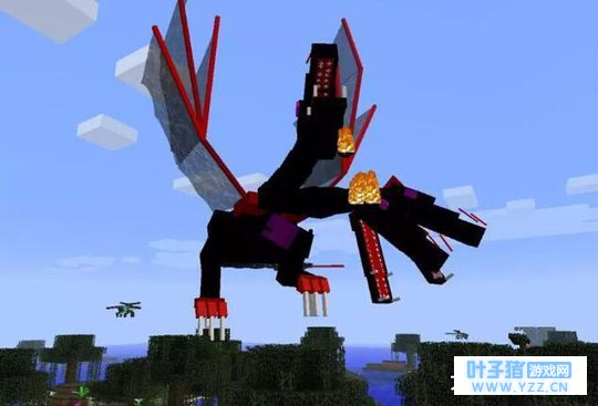 三、The Queen 代号皇后基多拉,出自OreSpawn模组,是该模组的最终BOSS之一,而这个模组也被众多玩家成为《我的世界》最好的MOD。皇后这个BOSS长相有点像长了三个头颅的末影龙,虽然脾气很温和,不主动攻击它并不会攻击玩家,但是当有人耐不住寂寞想要试一试它的脾气的时候,就会知道什么叫做作死。血量高达6000、伤害225左右,还会各种属性攻击,遇到发怒的皇后,唯一能做的就是有多远跑多远。