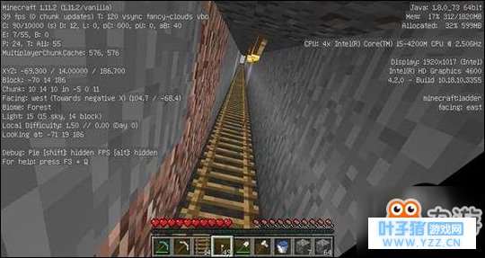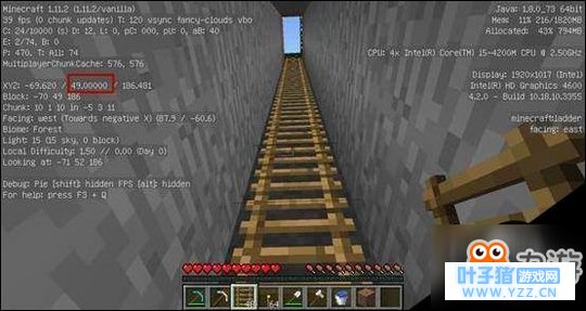 在向下挖矿的过程中,一定要点击F3可以查看当前坐标,红框中表示所在的Y坐标。