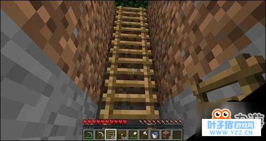 在向下挖的时候,记得要变挖边放上楼梯。之后依靠着楼梯往下挖。