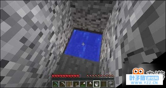 在这里放上一格的水,这样下去的时候就可以直接跳下去,不仅可以节省很多时间,而且还可以保证自身的安全。