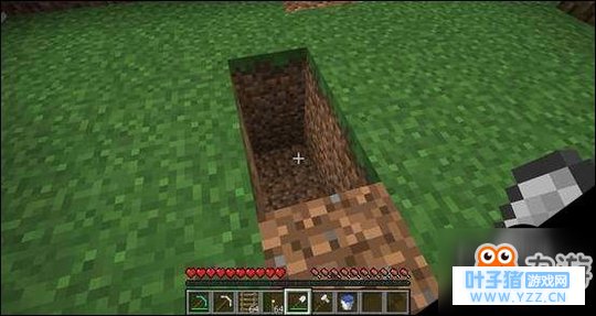 10层一般就是岩浆层,挖到11层后,即Y坐标为11时,就停止向下挖,然后在楼梯对面的一个坑里放上水。