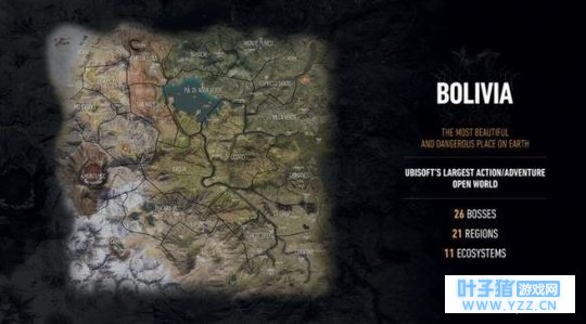 《幽灵行动:荒野》由育碧巴黎工作室开发,2017年3月正式面世,是一款动作射击类游戏。玩家将在游戏中扮演一名“幽灵小队”的士兵,深入南美的荒野中,打击玻利维亚的毒品犯罪。这款游戏是育碧有史以来地图最大的开放世界游戏,在游戏中包括了21个区域。和26个boss。地图横跨沼泽,高山,丛林等11种生态系统。总面积达到了440平方公里,几乎有2个《GTA5》那么大。在游戏中玩家如果仅仅依靠步行,花上一个小时都无法通过全图。