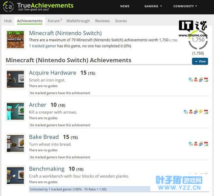 在未来跨平台版本更新后,使用你的XBOX Live账户登录,然后用户就可以在Xbox当中看到你的成就进度。 数据统计显示,玩家在任天堂Switch上获得1750个Gamerscore中的79个成就,这是微软跨平台的Minecraft游戏的福利。当然从某种意义上,这也可能是微软额外赚钱的一种方式。 完整的成就列表 :