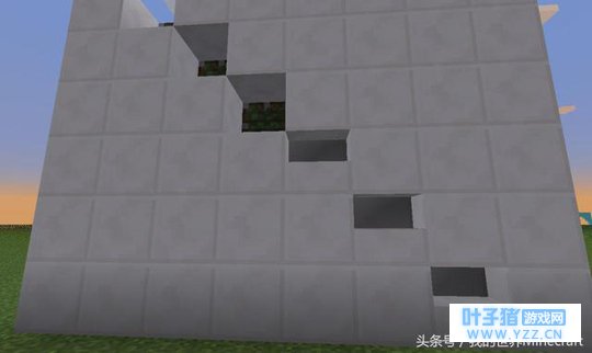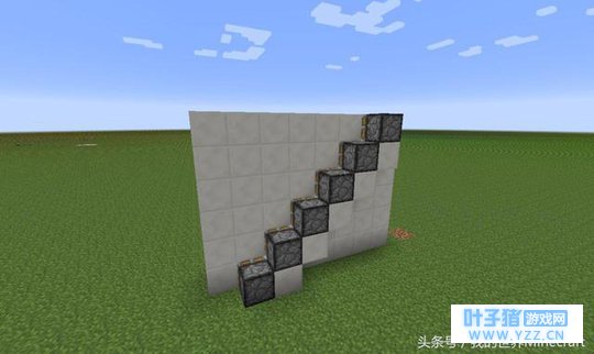 在每个“墙洞”的后面放置一个粘性活塞,这是用来牵引楼梯的,注意活塞的朝向要向着放置楼梯的一面。