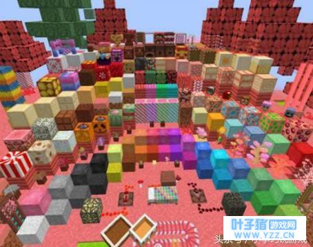 1、糖果世界 顾名思义需要用糖块做出来,通往这梦幻般的世界,需要通过糖果传送门进入,其做法和下界传送门的做法类似,摆好形状后在门的左下角或右下角倒上岩浆,就可以做成糖果世界传送门了。满世界的甜品也是点燃了小公举的一颗少女心,曲奇饼干做的山丘,地上是棒棒糖做的花朵,还有一条在童话镇里蜿蜒的河。行走在这样的世界里,糖果的香味像是要穿过屏幕溢出来呢。在糖果世界里还能找到糖果屋哦。